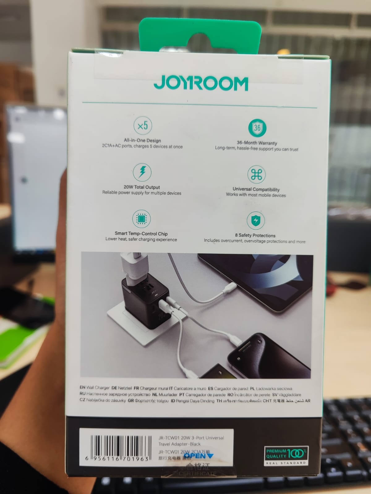 This is not a standard “dumb” adapter. The JOYROOM TCW01 20W 3-Port Universal Travel Adapter-Black incorporates smart circuitry to protect your expensive electronics from the unpredictable power grids often found in international travel.